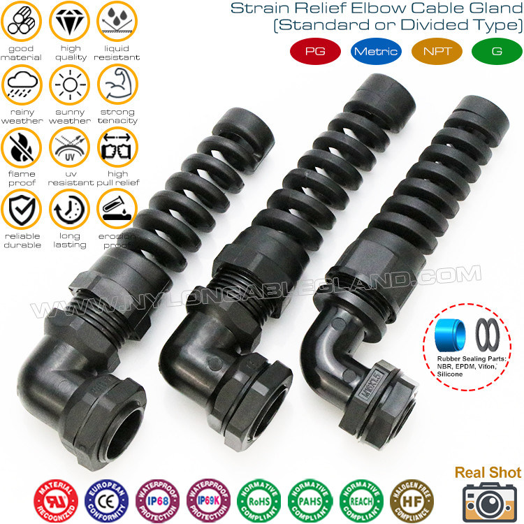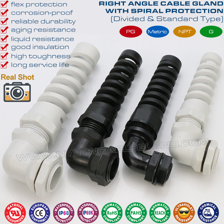 | পণ্যের নামঃ | পিজি এবং মেট্রিক থ্রেড এলবো প্লাস্টিকের তারের গ্রন্থি, আইপি 68 ডান কোণ নাইলন তারের গ্রন্থিগুলি স্পাইরাল নমনীয় সুরক্ষা সহ |